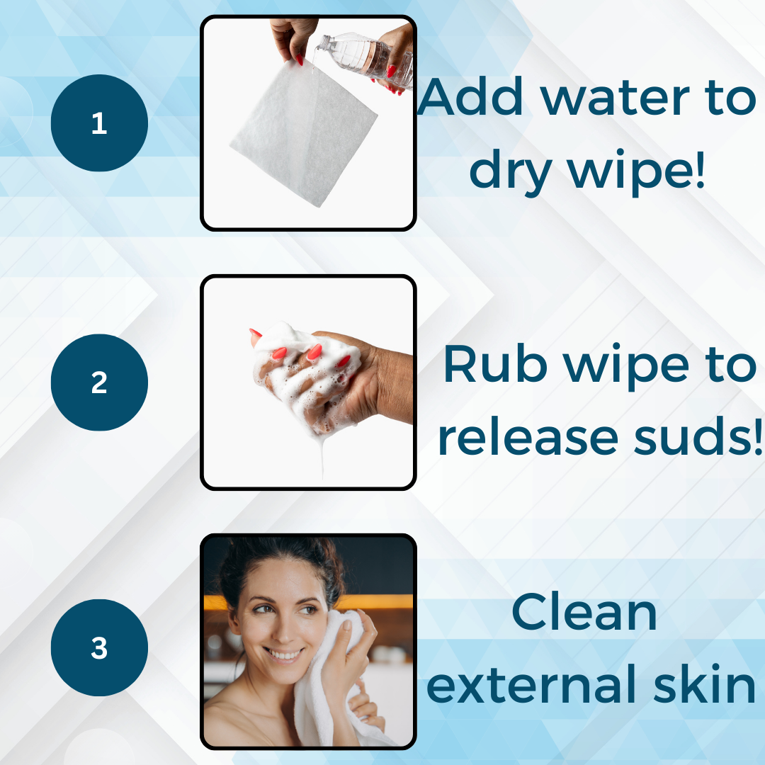 Want a better, faster, alternative to clean your family's skin? Fall in love with our disposable pre-soaped body wipes made with bamboo and infused with aloe for a soothing touch. Did we mention our wipes of 2X bigger than traditional ones and are pre-soaped for a fast and effective cleaning. For baby to the elderly!